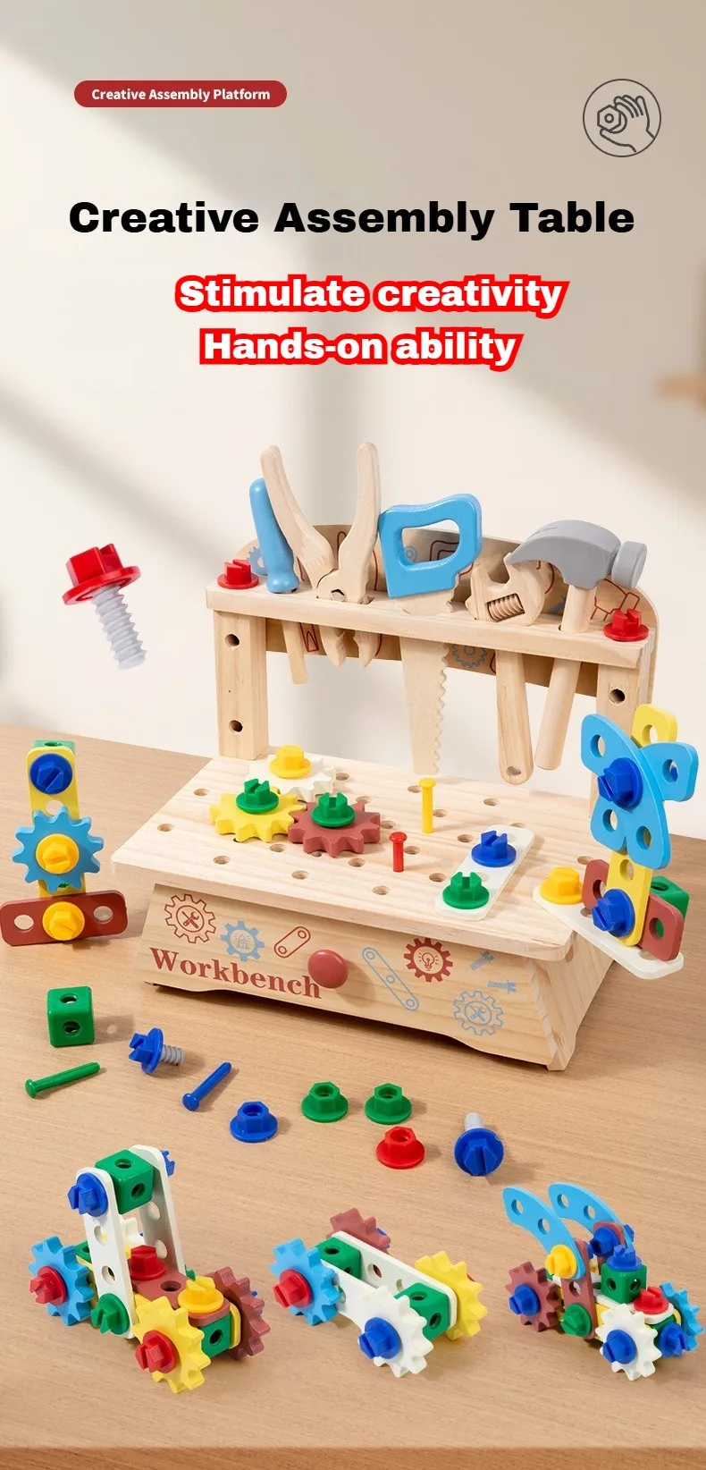 Tool Bench for Kids Toy Play Workbench Wooden Tool Bench Workshop Workbench with Tools Set Wooden Construction Bench Toy for Boy