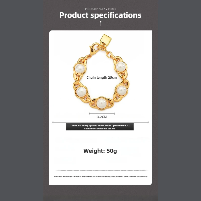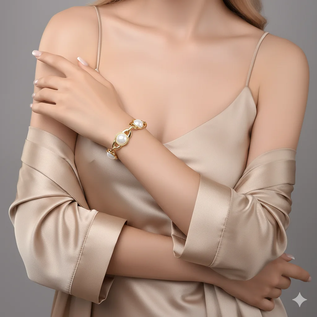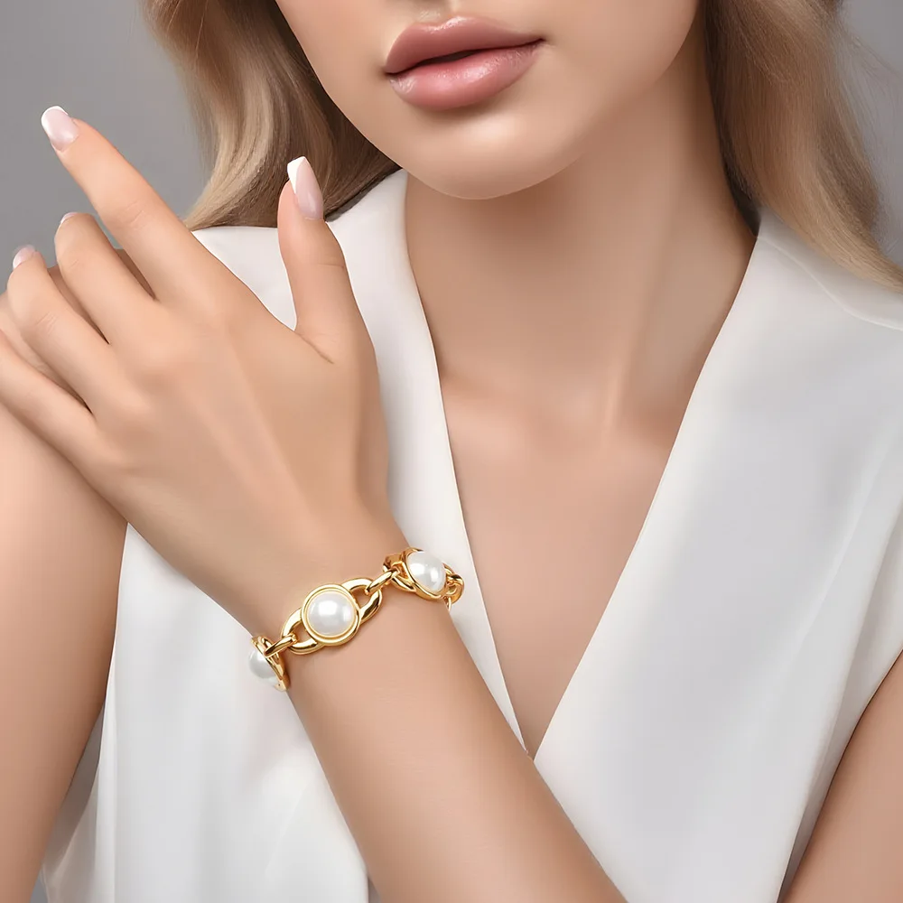 Trendy Pearl Golden Bracelet Heavy Retro Bangle Luxury Jewelry Elegant Accessories Party Gift