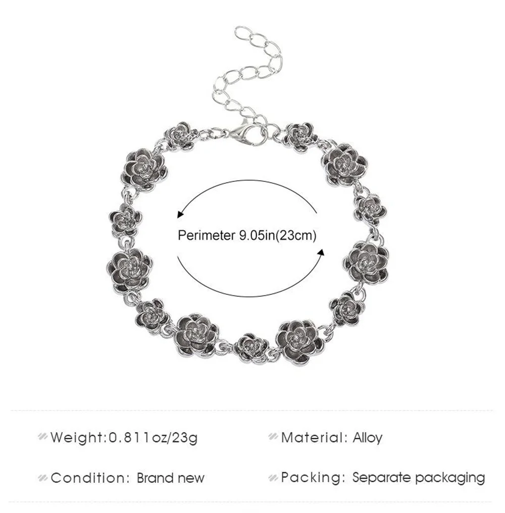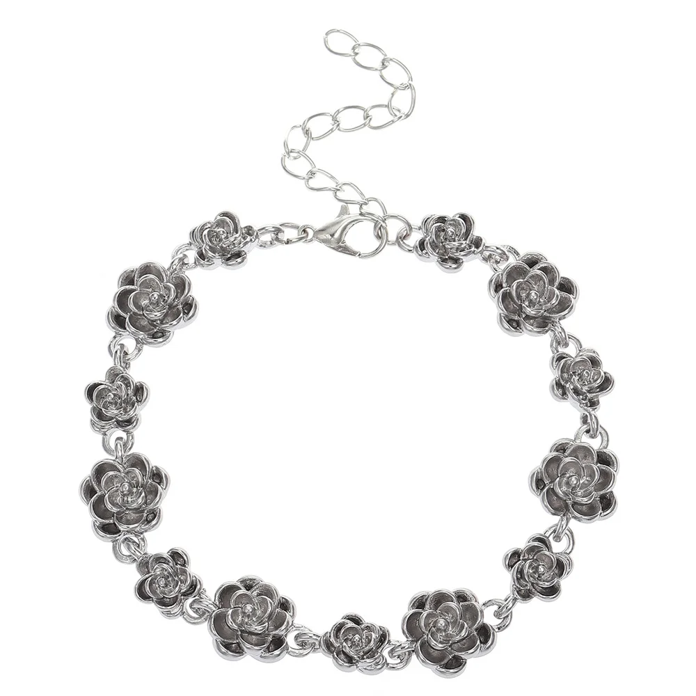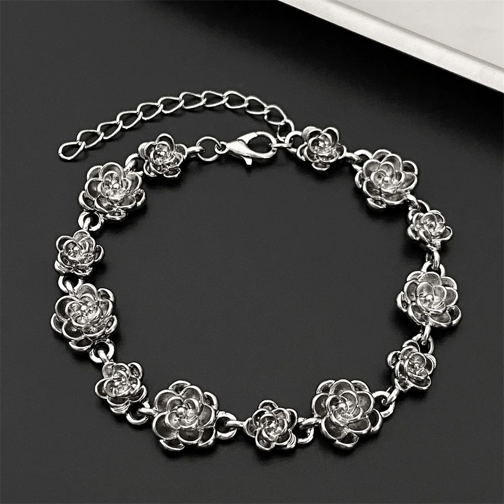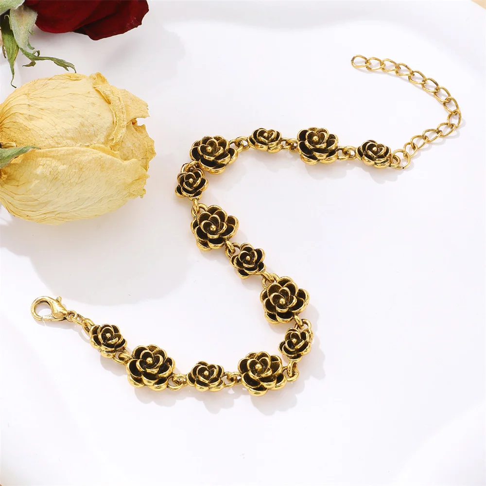 Trendy Rose Flower Charm Bracelet for Women Alloy Romantic Gift for Girlfriend Personalized Bracelet Party Jewelry Accessories