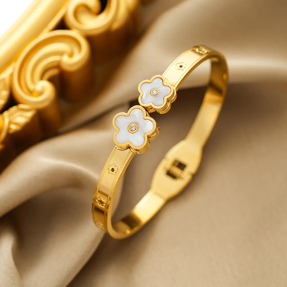 Trendy Simple Shell Flower Bracelets for Women 3 Colors Stainless Steel Can Open Bangles Hand Accessories Jewelry Christmas Gift
