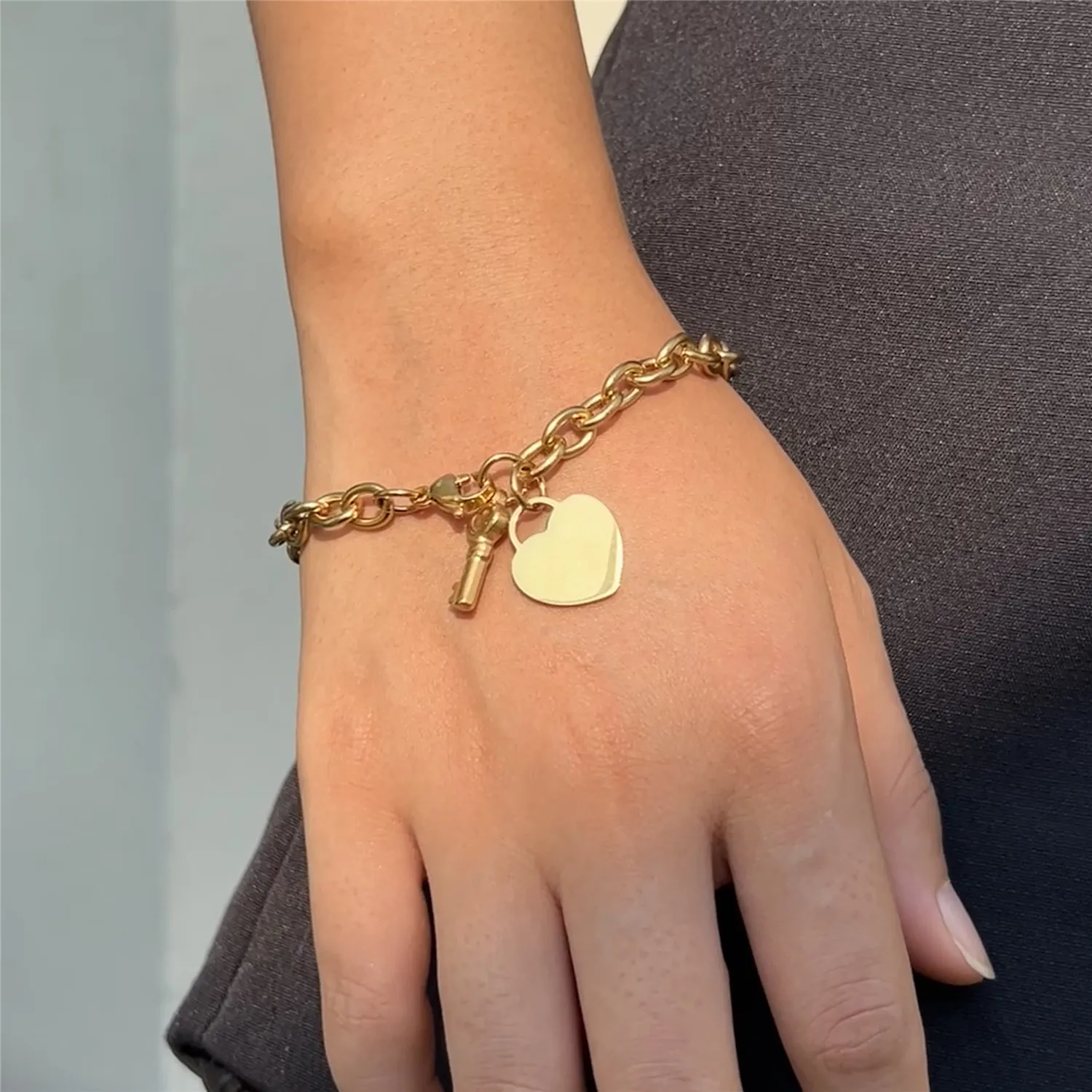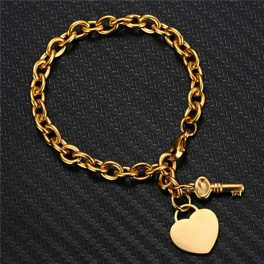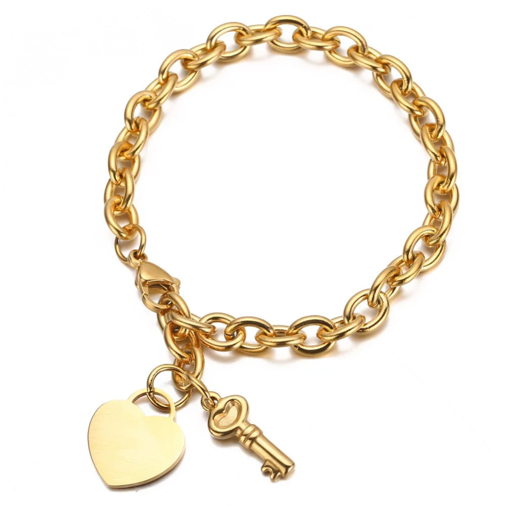 Trendy Stainless Steel Bracelets With Hearts Charm Bracelets New Fashion Key Jewelry Gifts