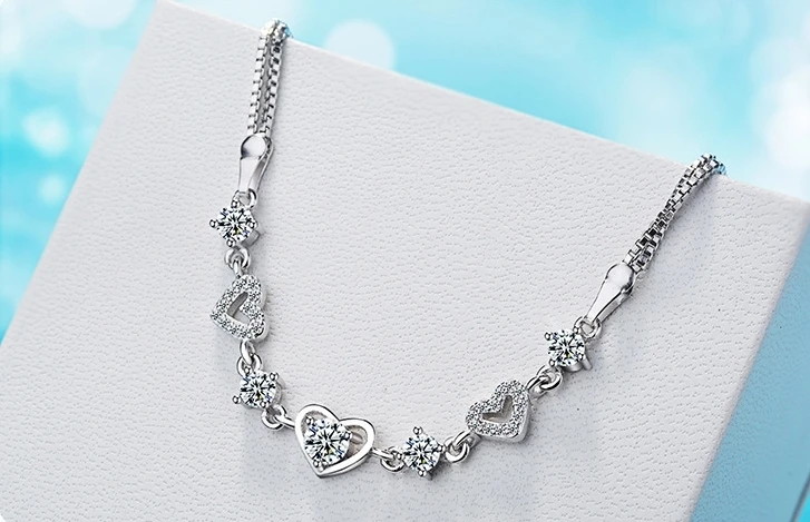 Trendy Sweet Style Crystal Women Bracelet Fashion 925 Sterling Silver Bangle Girl New Arrival Bride Wedding Party Bracelets