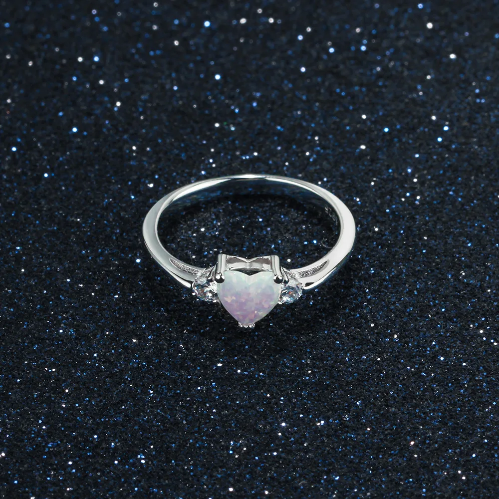 Trumium 100% 925 Sterling Silver Heart Shaped White Opal Engagement Promise Band Ring for Women Heart Halo Cubic Zirconia Ring