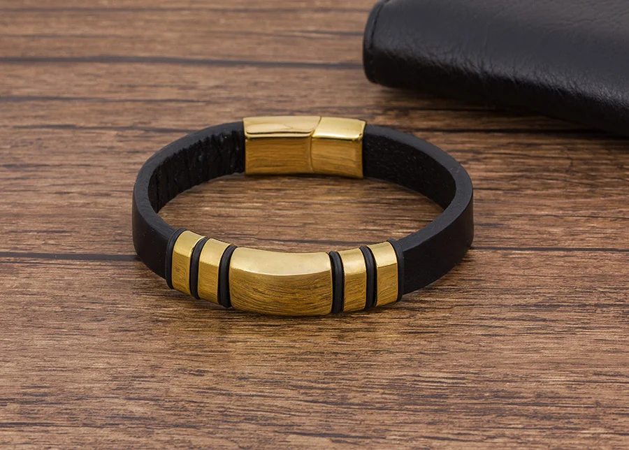TYO Trendy Punk Rock Fashion Genuine Leather Bracelet Men Metal Stainless Steel Jewelry Magnetic Braided Vintage Dropshipping