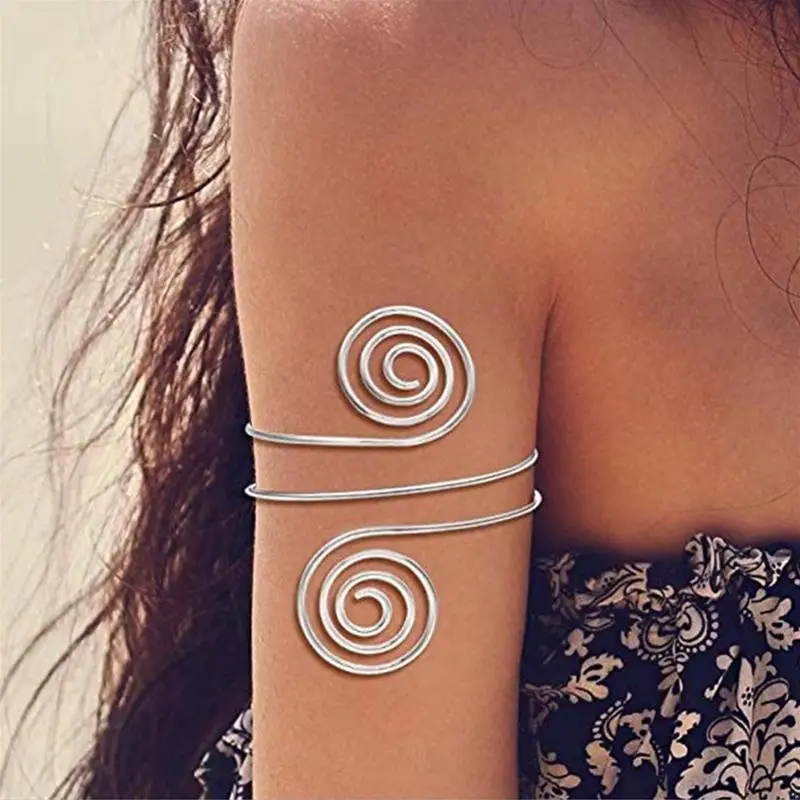 Upper Arm Bracelet Metal Coil Armband Cuff Fashion Simple Arm Bangle Armlet Adjustable for Women Girl