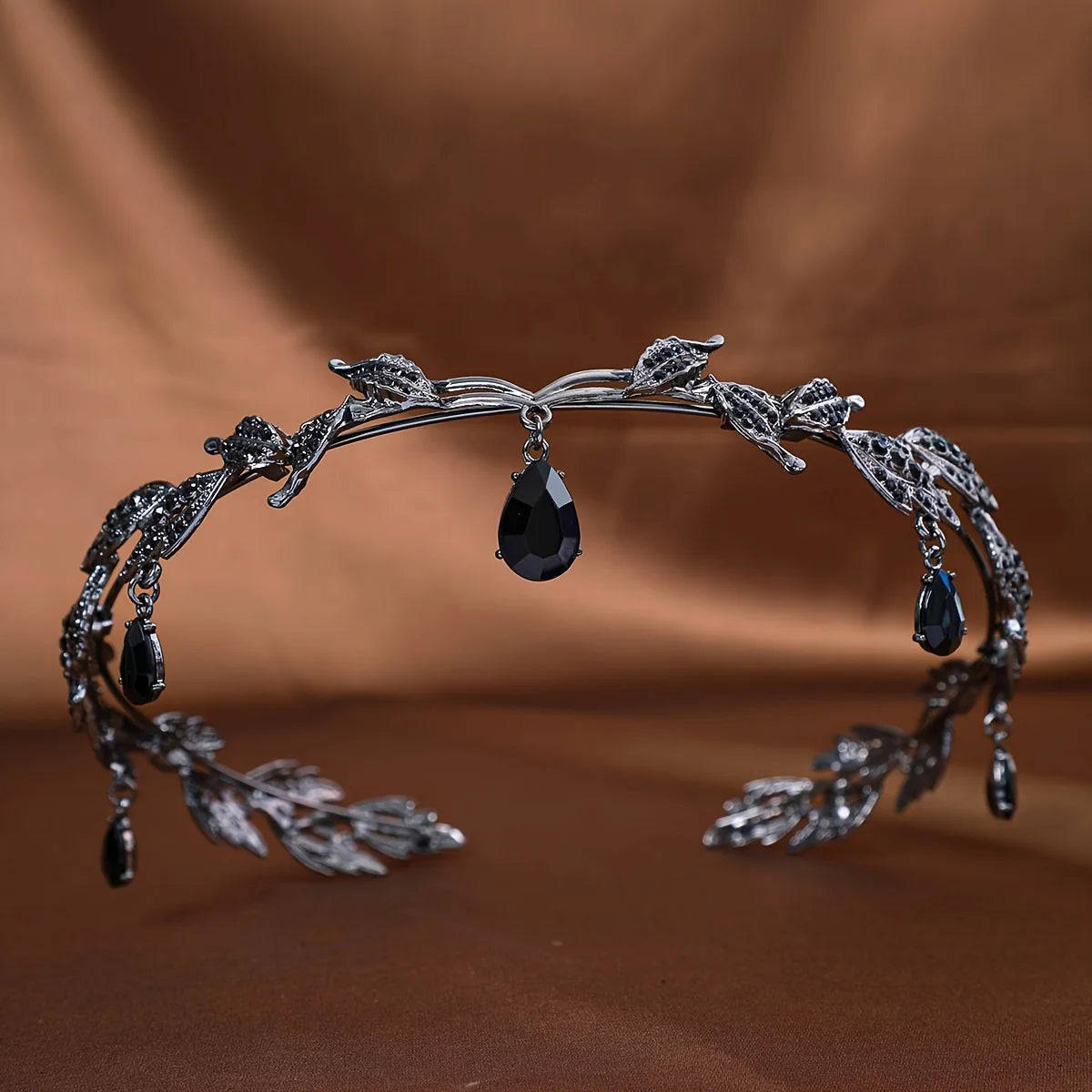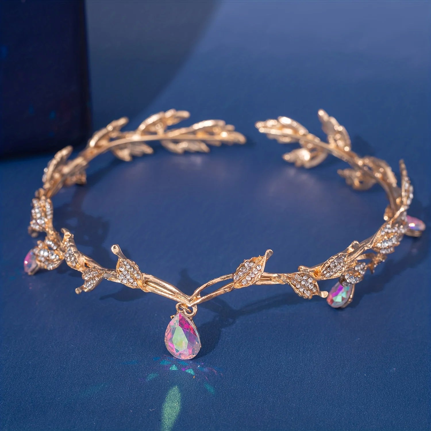 Vintage Fairy Crown Tiaras Crystal Leaves Elf Tiara Bandana Hair Accessories for Women Costume Hair Jewelry
