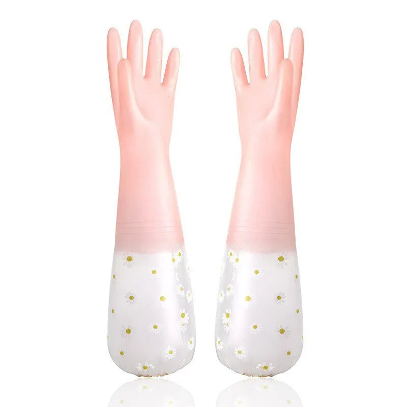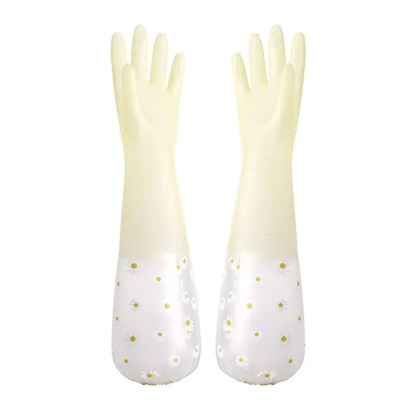 • Waterproof Material :Crafted from smooth lining latex, these gloves offer superior waterproof protection, making them ideal for kitchen cleaning and laundry tasks.
