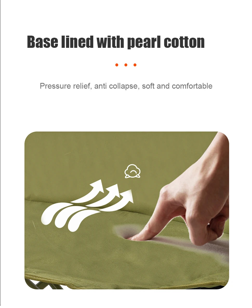 【Comfort and Protection】 The thickened cotton material provides enhanced comfort while seated. Whether for outdoor camping, indoor use, barbecues, or picnics, this foldable camping chair offers excellent support and a comfortable resting experience.
