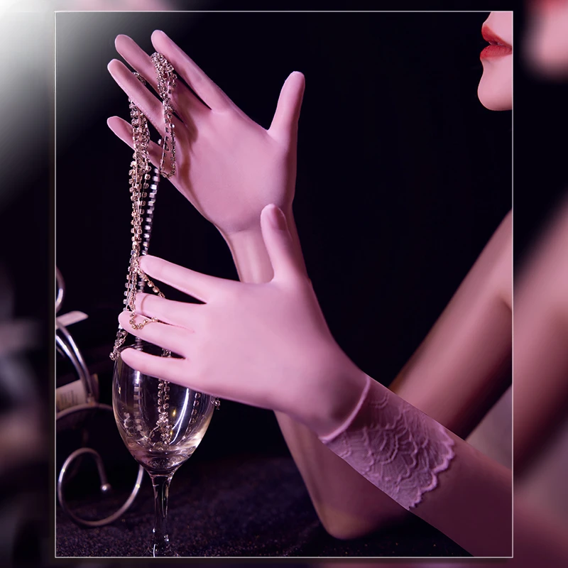 Women Sexy Gloves New Ultra-Thin Oil Shiny Transparent Silky Lace Masturbation Gloves Mittens Cosplay Erotic Temptation Clubwear