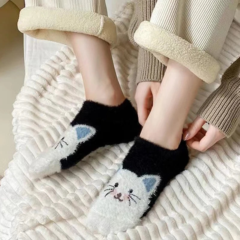 Women Socks Warm Soft Fuzzy Slipper Non-slip Thick Invisible Mink Cashmere Sock Panda Kawaii Ankle Sox High Quality Comfortable