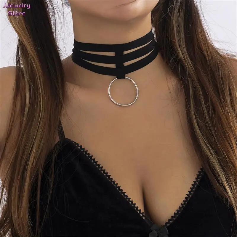 Women'S Fashion Jewelry Black Velvet Velvet Layered Choker Collar Necklace 434