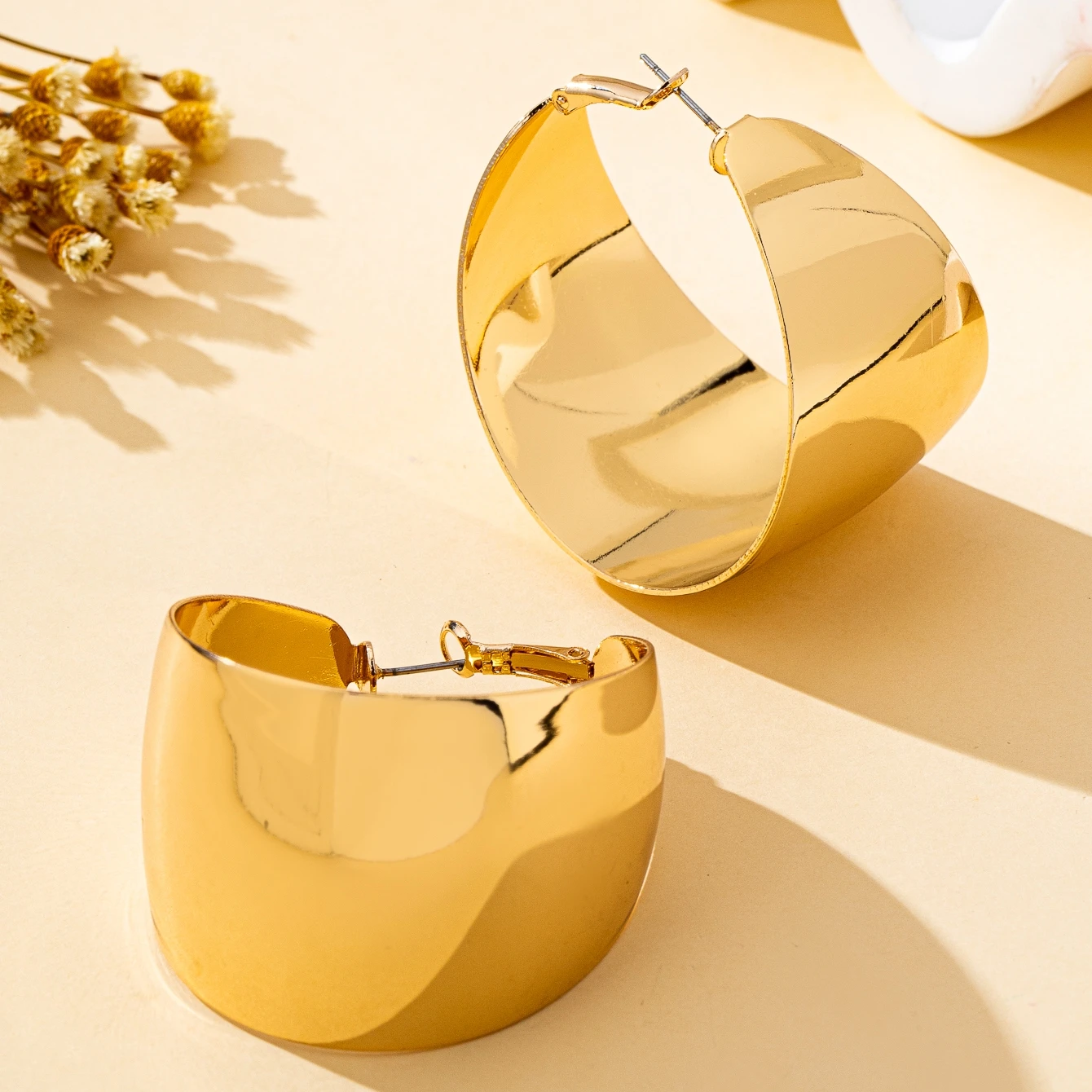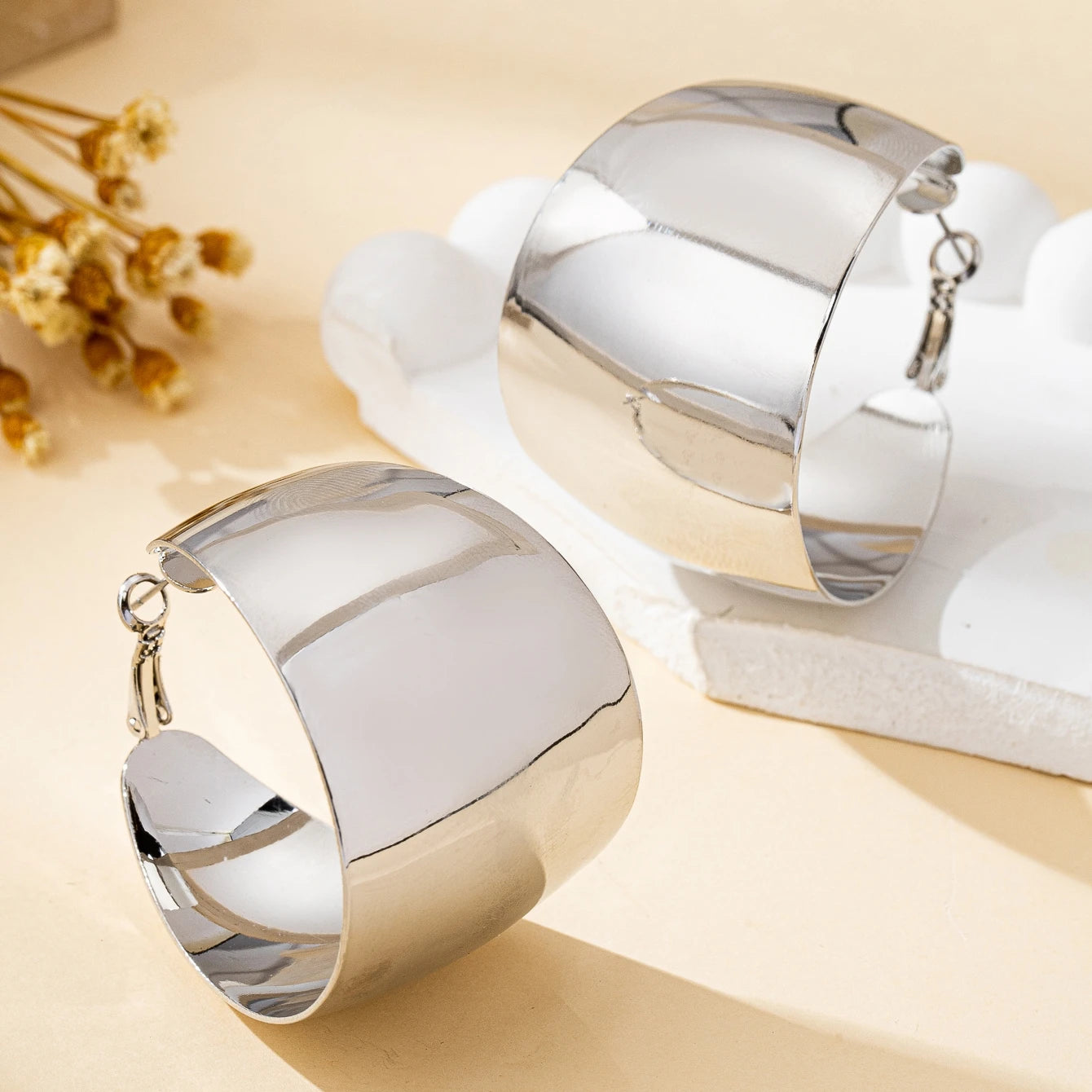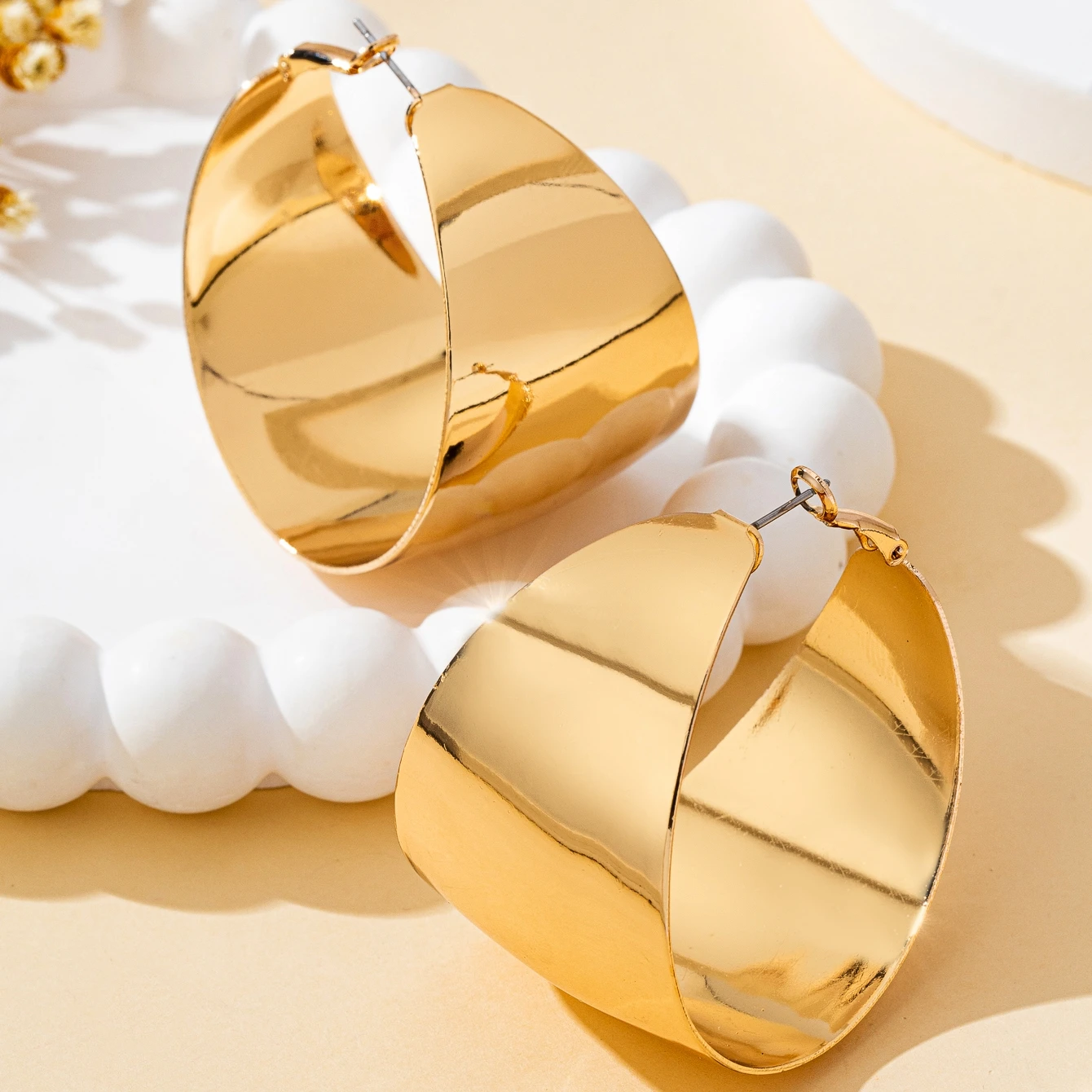 Women's Fashionable Hoop Earrings Glossy Geometric C-Shaped Large Hoop Earrings Suitable for Daily Wear and Vacation