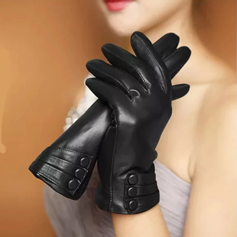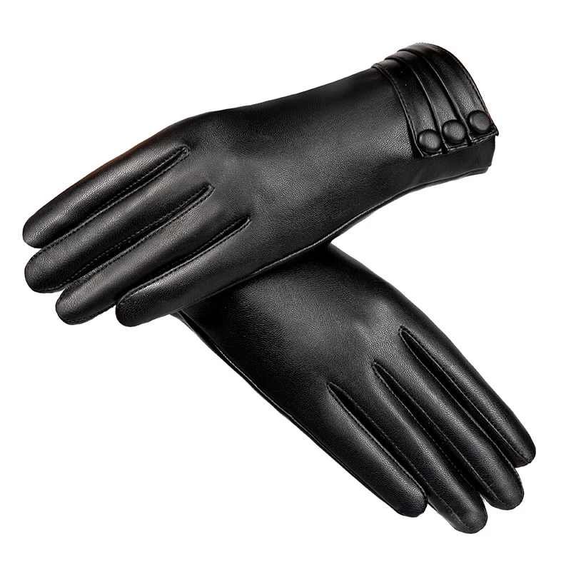 Women's Gloves Winter Outdoor Fashion Comfortable Warm Glove Plush Touch Screen Driving PU Leather Gloves