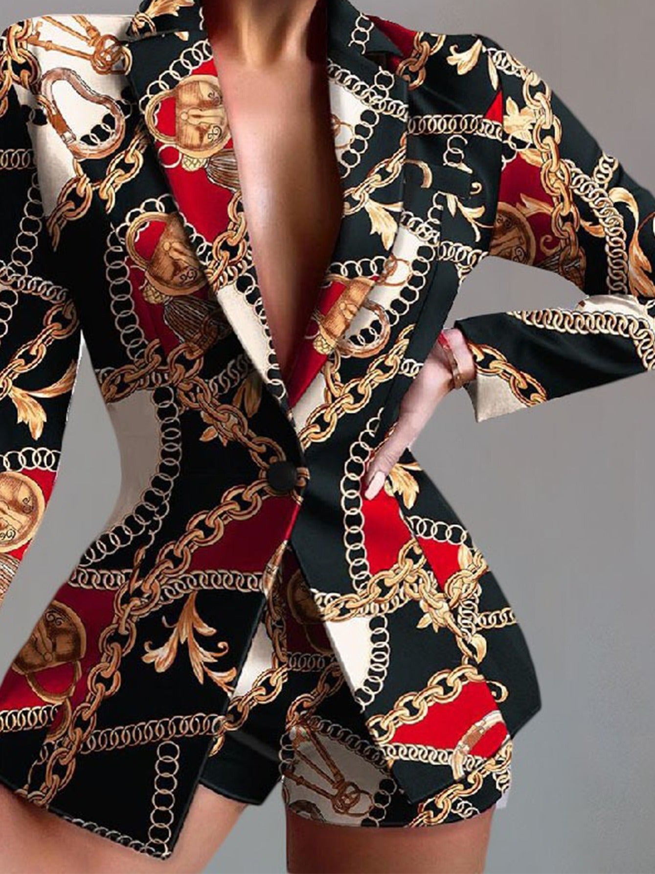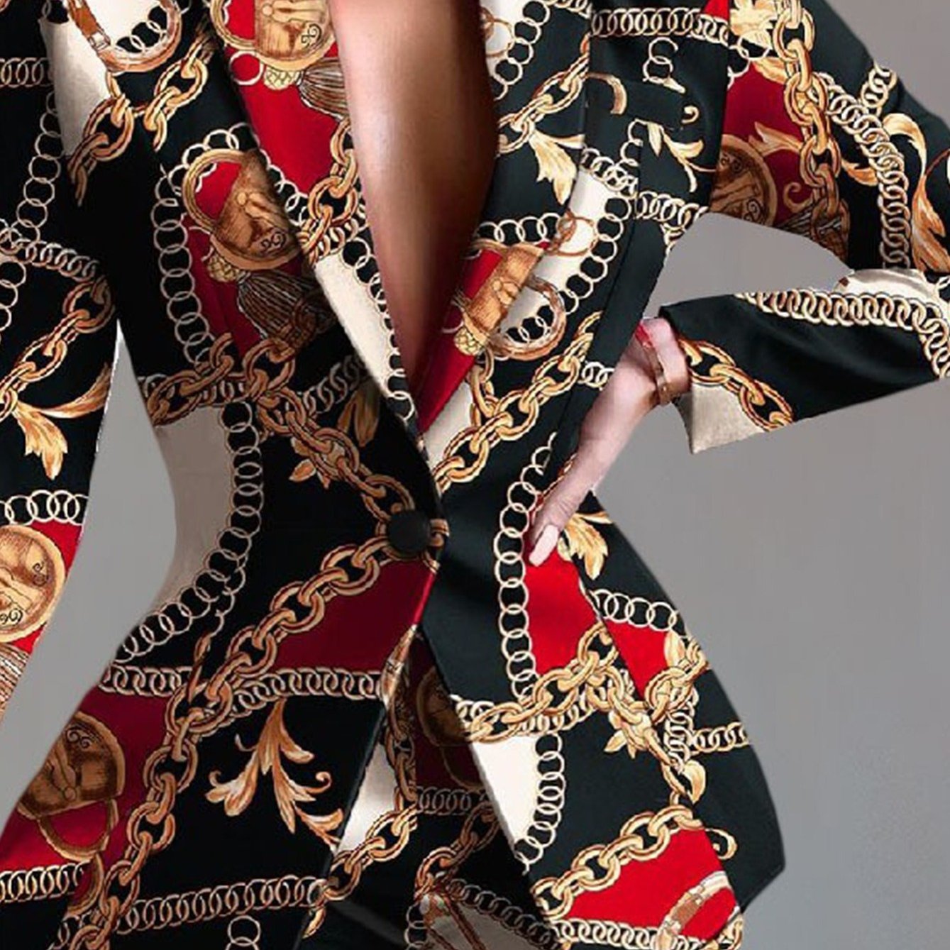 Women's Set Fashion Makeup Fitted Crop Pants 2pcs Blazer Set